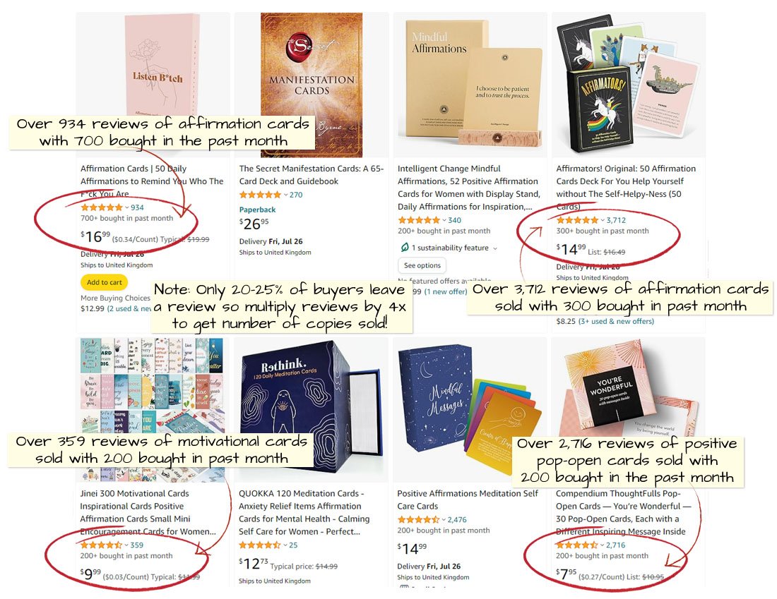 With 1000s of people buying manifestation, affirmation cards, positivity cards, journals, planners, posters and more every month, it's obvious there's huge potential in this niche with plenty of angles for you to profit.